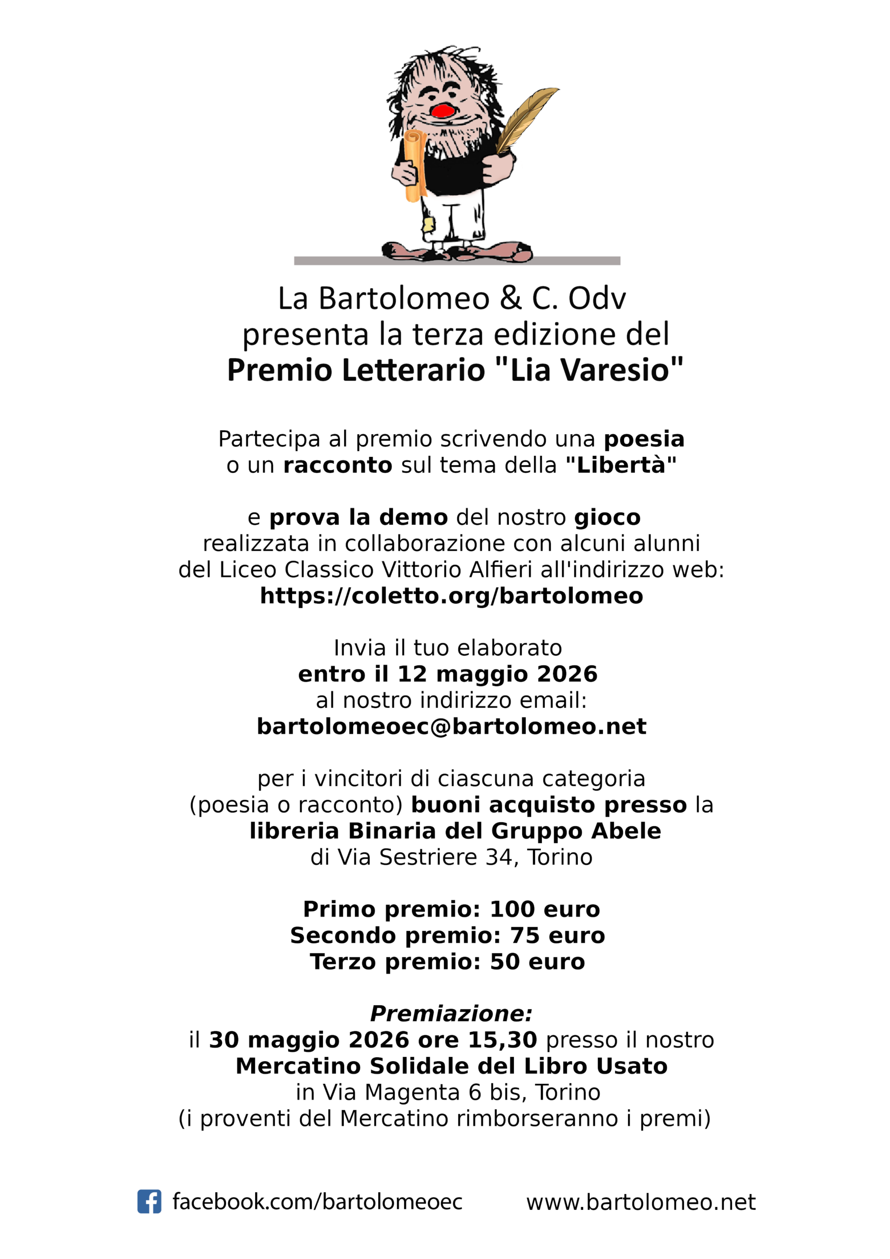 Sono previsti premi in buoni libro per i primi tre classificati.